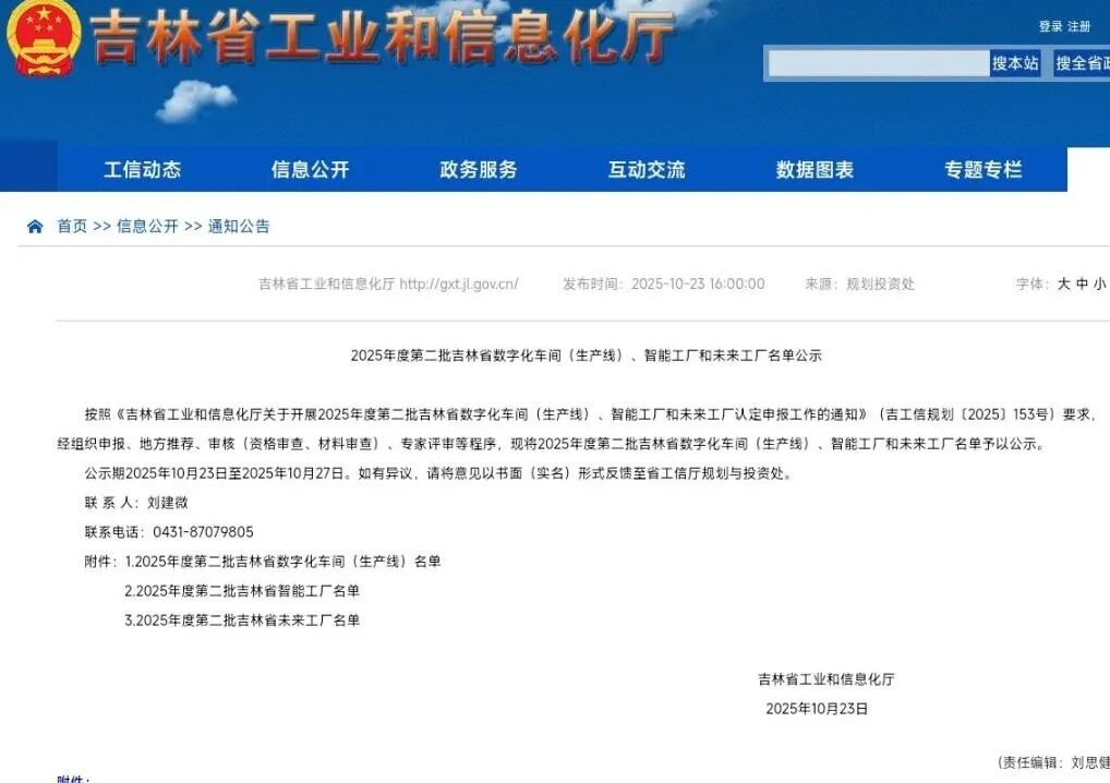 2025年10月,吉林省工業(yè)和信息化廳發(fā)布2025年度第二批吉林省數(shù)字化車(chē)間(生產(chǎn)線(xiàn))、智能工廠(chǎng)和未來(lái)工廠(chǎng)認(rèn)定名單,美思德(吉林)新材料有限...